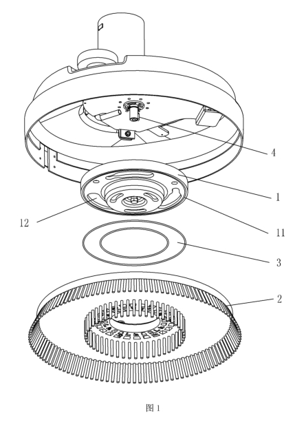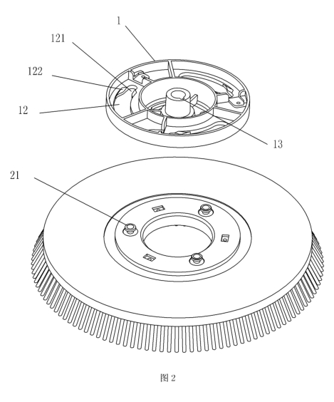 旭潔洗地機(jī)刷盤的安裝方法是:使用刷盤升降踏板升起刷盤座,將刷盤放到刷盤座中央,向上貼合刷盤座,向左旋轉(zhuǎn),待刷盤裝好,啟動(dòng)刷盤開關(guān),刷盤轉(zhuǎn)動(dòng),完成裝刷操作。目前市場(chǎng)上所有洗地機(jī)品牌基本都是通過(guò)類似的電機(jī)導(dǎo)向?qū)崿F(xiàn)刷盤固定座與刷盤的自動(dòng)對(duì)位,在對(duì)位的過(guò)程中,刷盤固定座與刷盤的安裝端面剛性碰撞,會(huì)產(chǎn)生強(qiáng)烈的碰撞對(duì)位噪音,影響操作者使用舒適性。為了提高用戶體驗(yàn),旭潔新型洗地機(jī)進(jìn)行了研發(fā)和改善。